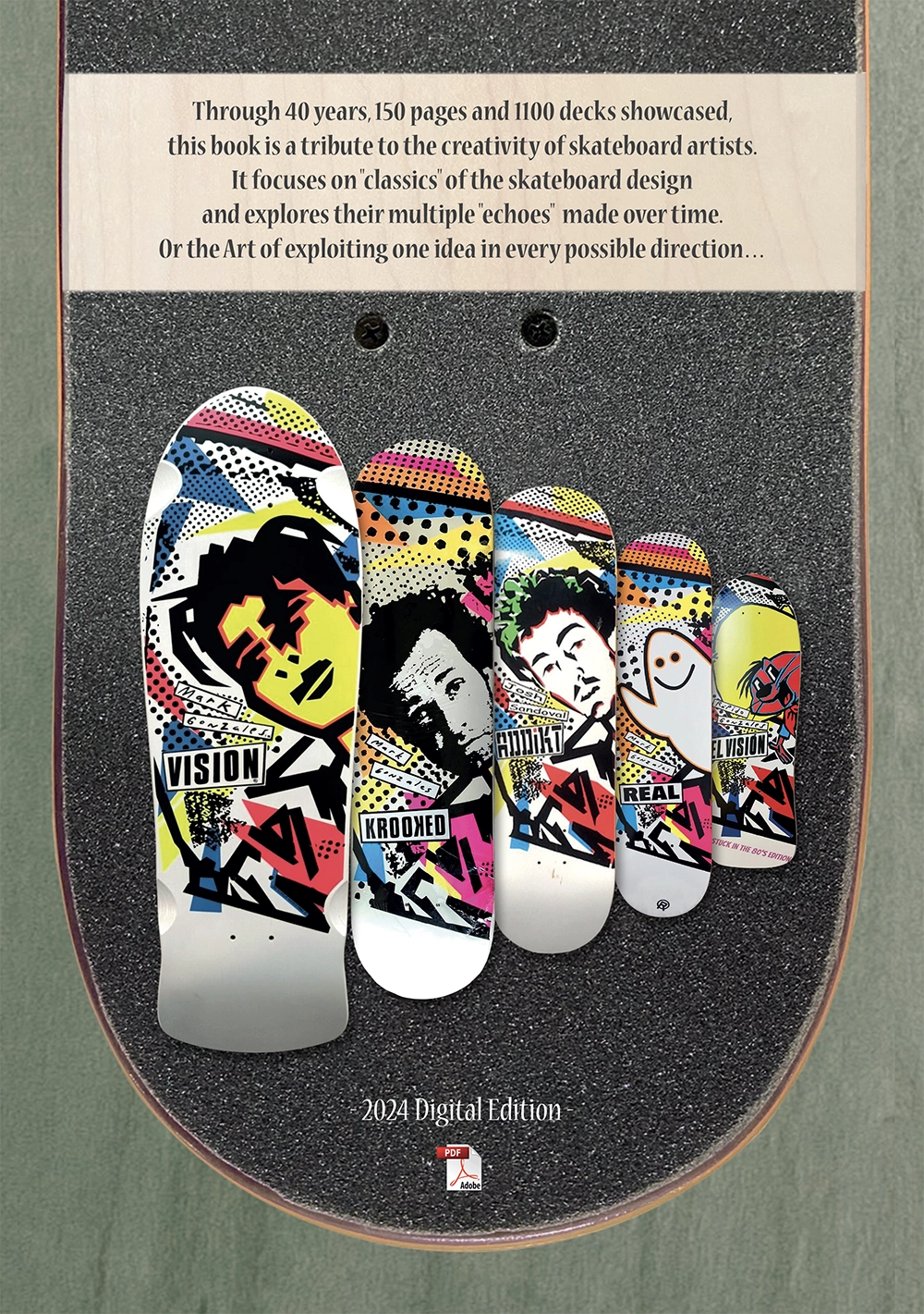 Through 40 years, 164 pages and 1200 decks showcased, this book is a tribute to the creativity of skateboard artists.