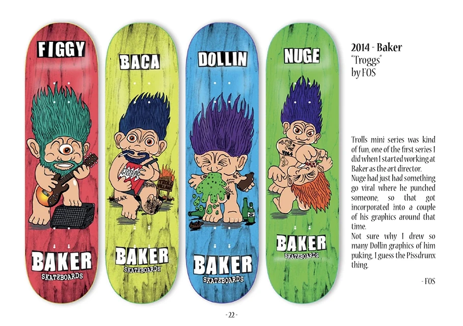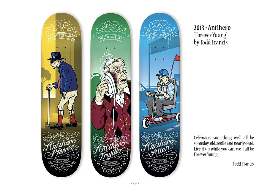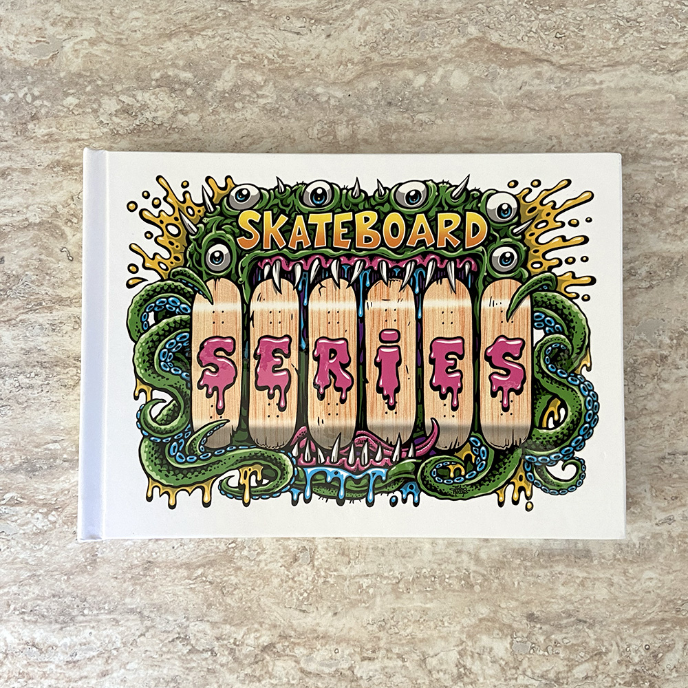 It features over 1000 skateboards, organized into 200 series, drawn and commented by 70 artists, and produced by 35 leading skateboard companies.